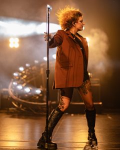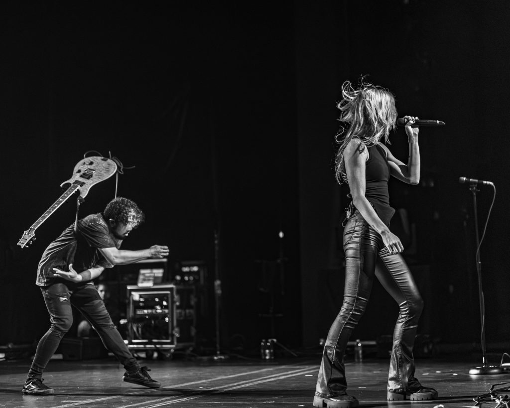 The lights dimmed and Taylor hit the stage. High-gain guitar riffs and fast drumming filled the theatre as we photographers found ourselves scrambling to follow the jackrabbit from stage left to right. “Final Nail” was the opening song choice and a fantastic one to get the crowd pumped up for the rest of the night with its addictive chorus and heavy breakdowns. The setlist switched to a couple of tracks from Certified Depressant, before returning to another new song “Birds Still Sing” which Taylor started alone with an acoustic guitar. It was an emotionally captivating experience as she opened up to the crowd, singing her heart out and slowly building up tension before the rest of the band joined in for an explosive crescendo of rock. Each bandmate was having a blast performing too, with the drummer spinning his sticks as he played, the guitarist headbanging and throwing the instrument around his body, and of course, Taylor jumping around and twirling to the sound of the music.