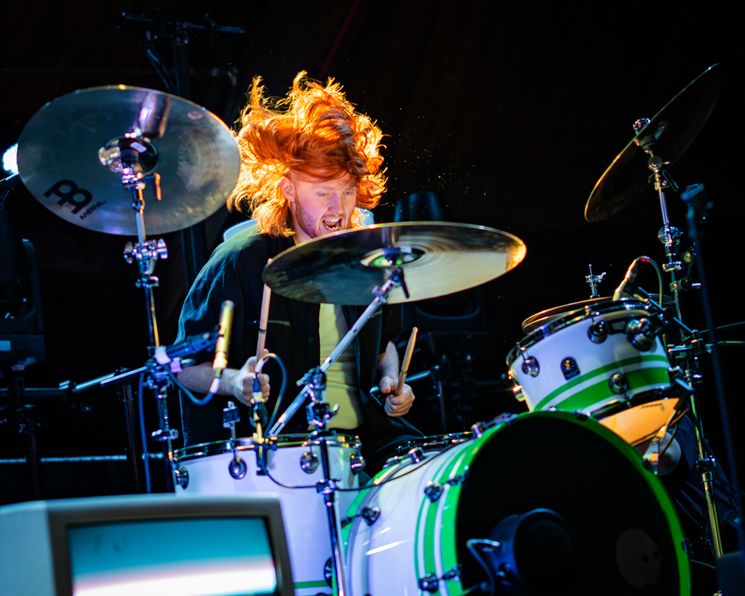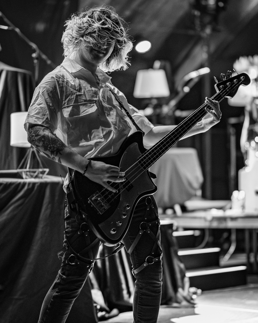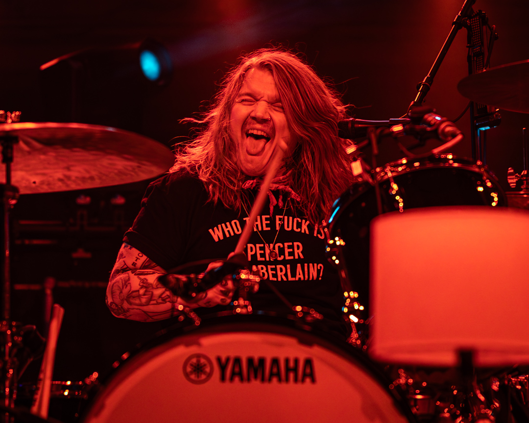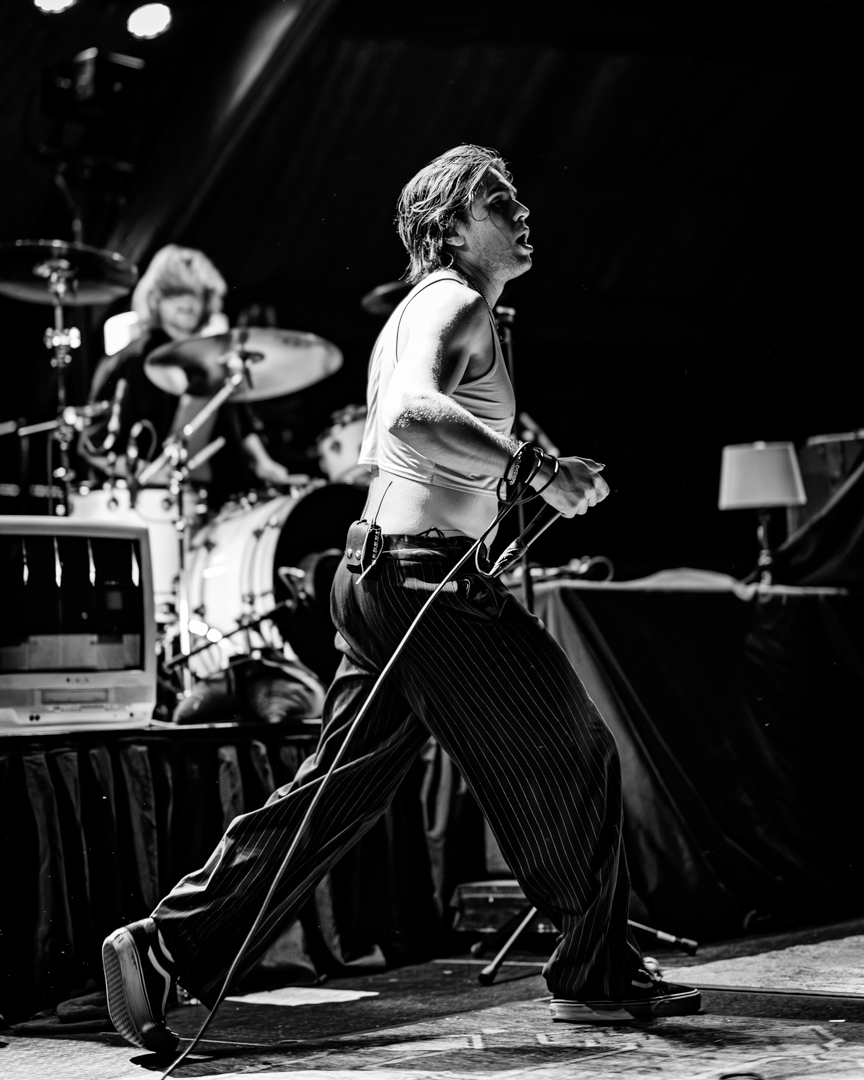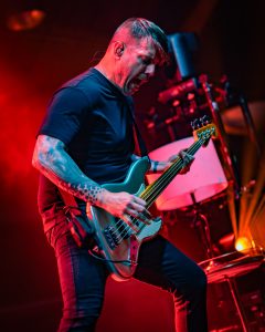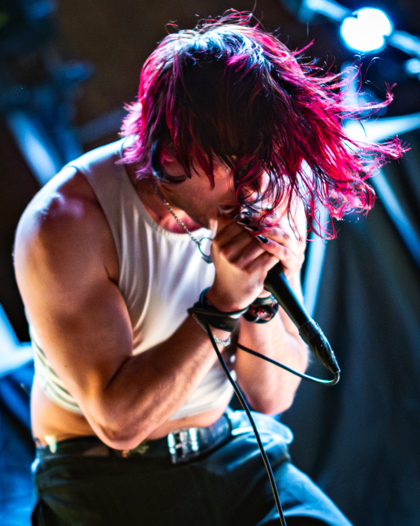 Up next was Static Dress, the 2018-formed post-hardcore band from Leeds, UK. There could not have been a better pick for this tour as internet fans describe Static Dress as a modern Underoath from their They’re Only Chasing Safety era, while still sounding fresh and different. When Static Dress’s set started, the lights went out and two old-school CRT TVs started playing ominous clips as the band quietly took to their places on the stage. Seconds later, the shadow of vocalist Olli Appleyard sprung forward, the lights burst, and fast-delivered screams met heavy melodic riffs over a drumbeat that was difficult to keep up with. As heavy as the set had been, Static Dress then dialed it up to 11 with “Courtney, just relax” – a song featuring some of the band’s deepest growls as well as guest vocals from Jess Nyx of the band World of Pleasure. Jess joining Static Dress on tour for those guest vocals is a welcome surprise you do not see often! They maintained momentum for the rest of the set, with the crowd opening up wide for two-steppers, eventually leading to a huge circle pit for their final and most popular song “clean.”.