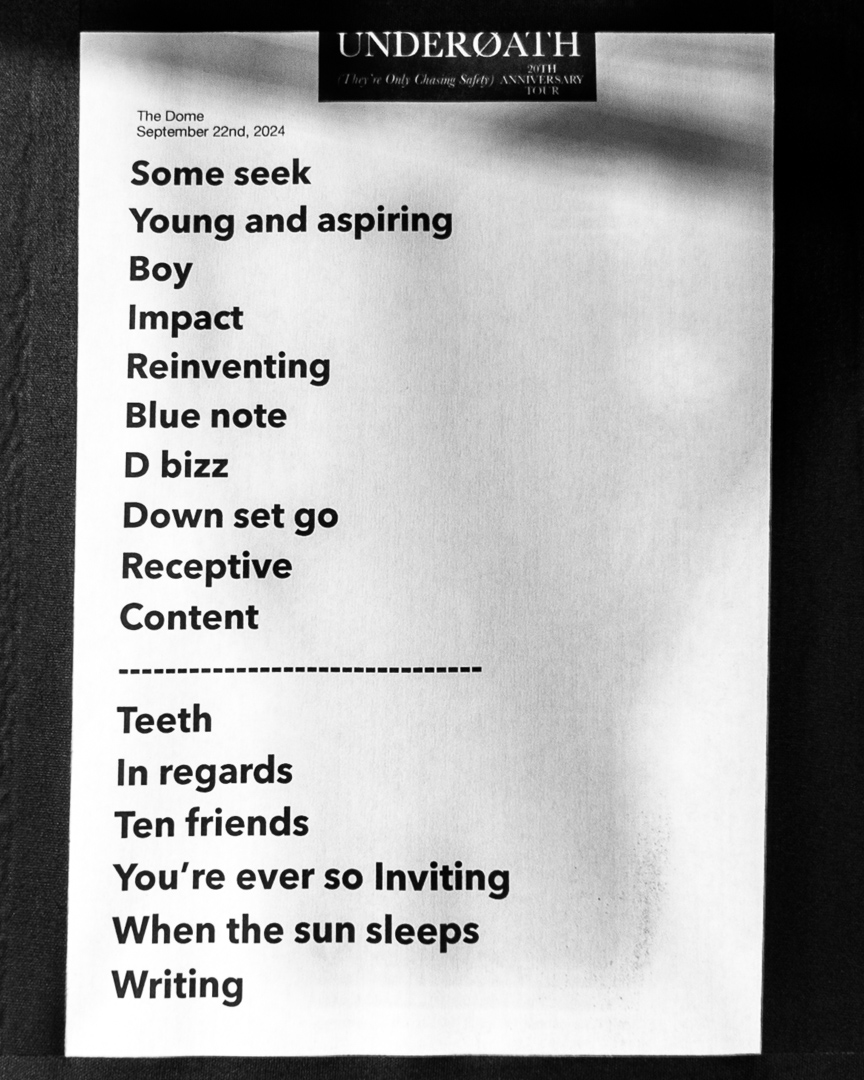 After they played through the full album, Underoath took a well-needed breather and rearranged the stage before they switched over to the setlist of additional songs. Gone were the moody table lamps and sofa – out came a modern neon sign for a backdrop, which returned the show from the early 2000s to the present. Their newest single “Teeth” (out this month) was first up plus a handful of hits voted for by ticketholders. The high energy of the night continued and there was a seemingly endless torrent of crowd surfers being launched out of a constantly bouncing crowd. It truly is no exaggeration that this was the most intense crowd that The Dome had experienced in years. We will be waiting for Underoath’s inevitable return with that new unannounced album!